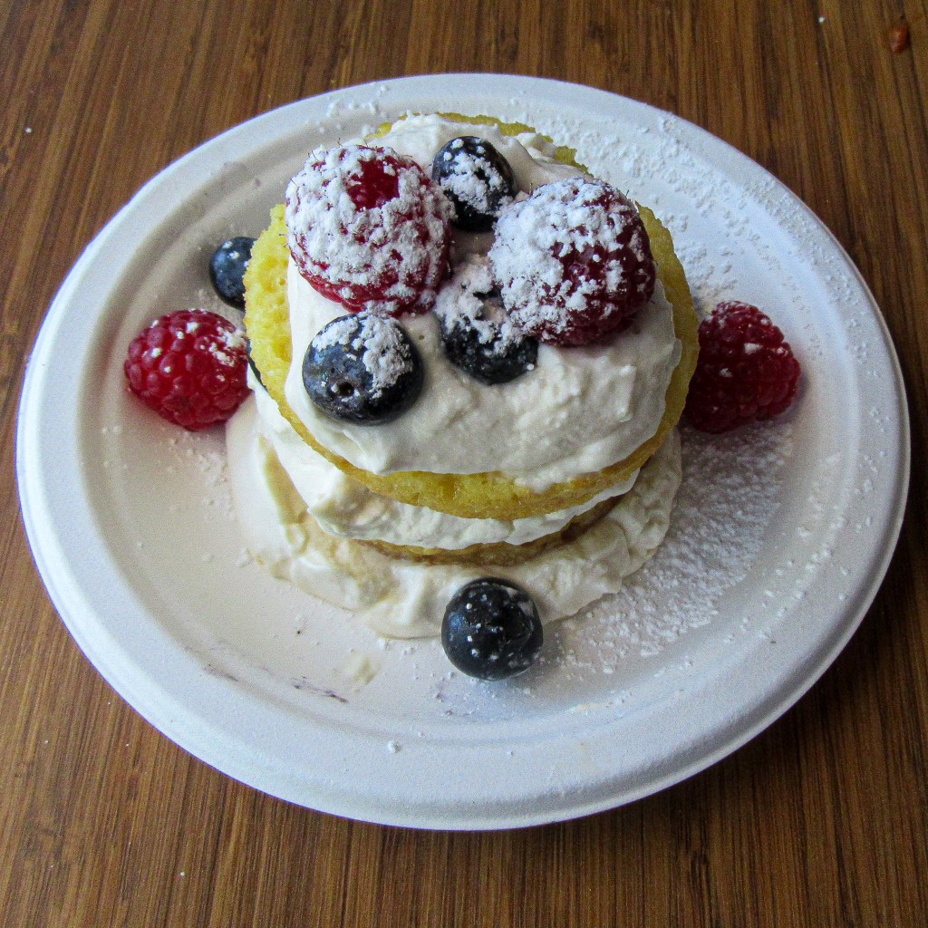 I had heard that they made a good fish taco and I heard correctly. This one did not disappoint and was one of the better fish tacos I’ve had, especially this far north. The fish was lightly beer battered and fried perfectly with just a bit of crunch on the outside and flaky and hot inside. Served simply on their homemade tortilla with cabbage, radish, pickled red onions, avocado sauce and a mayo based sauce. Very tasty. The only thing better than delicious food is delicious free food! Homeboy brought out a free dessert, a tres leches style cake with fresh berries. Very tasty! Rare that I have dessert, especially at lunch, but it was cool and refreshing and left me quite full. The food is really on point here. I did go on opening day, and they have some things that they have to work out in terms of the restaurant, but that is expected with a new restaurant, especially transitioning from a food cart. Definitely worth a visit! Happy Eating.
