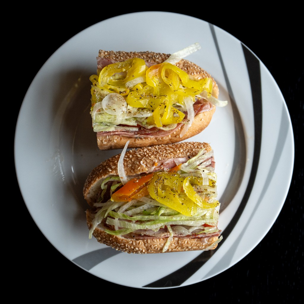 Speaking of their Italian, the Big Dom, here it is pictured above. Salami cotto, capicola, ham, provolone, cherry pepper relish, shredduce, tomato, onions, banana peppers, red wine vinaigrette, mayo and oregano on a sesame hoagie roll. This is the Italian sandwich that other Italian sandwiches dream of. I always judge a sandwich shop by their Italian, and this one is killer! Very memorable and crave-able.