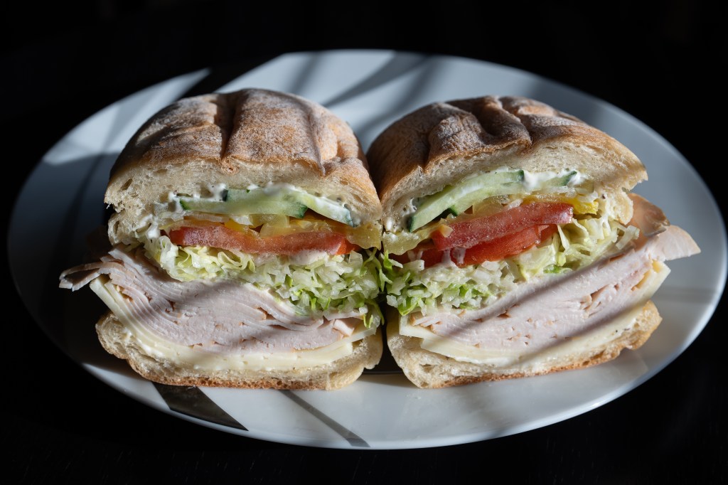 Last up is the P.C.T. Turkey, havarti, cucumber, pickles, banana peppers, shredduce, tomato, onions, Bellair mayo, Dijon vinaigrette on a toasted ciabatta. Not your average turkey sandwich. Piled high with delicious turkey, the havarti cheese really makes this sandwich sing. The pickles, peppers, and vinaigrette contribute a needed acidic component. As many times as I’ve been, I still haven’t made my way through the 8 sandwich menu. I have had their Gobbler (turkey, bacon, cranberry sauce) though it’s not pictured here. The ones I haven’t had yet are the Garden Melt (veggie) and the BLT Melt, nor the plain grilled cheese. I will order those on my next trips!