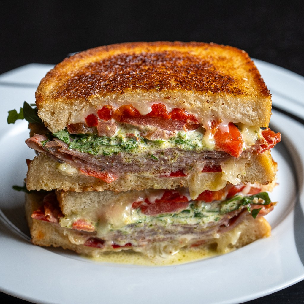 The South Street. This was a juicy boy. Similar to the Mama Fratelli but with enough distinctions to make it it’s own beast. Salami cotto, capicola, provolone, Mama Lil’s, roasted red peppers, tomato, arugula, pesto aioli, Walter’s hot honey melted on sourdough. This was so good it made me rethink my #1 sandwich. Love the buttered and grilled sourdough.