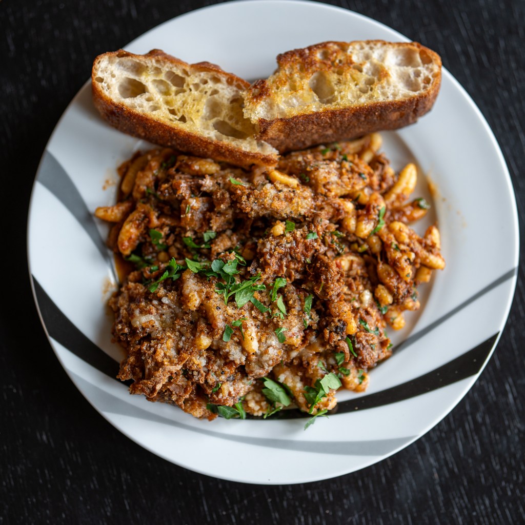 Cavatelli al Ragu di Agnello from March of 2024. House made cavatelli pasta with saffron braised lamb ragu, ricotta and toasted rye bread crumbs. This was a delicious, rustic pasta. I rarely eat lamb, and didn’t expect it to be so prevalent in the ragu. It was a lot of lamb! Not complaining though, since it was delicious. This dish was on the heavy side, which is a bit different from a lot of the other items I’ve had here that air on the lighter side. Let’s just say it made for a sleepy afternoon. And of course a side of the bread, that is a must if you’re getting anything besides a sandwich there.