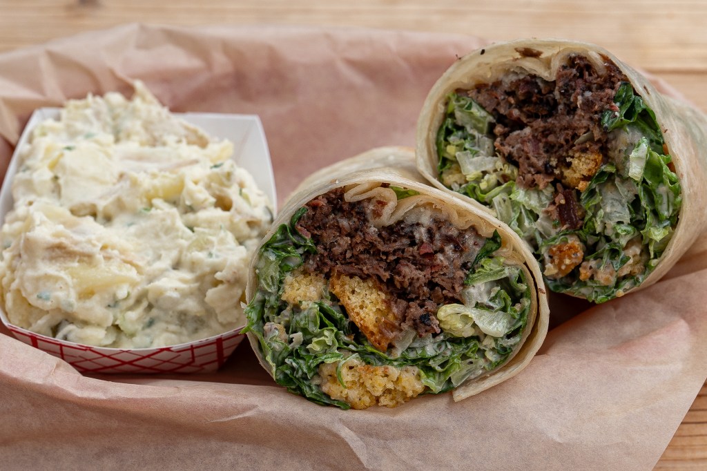 This is the Smoked Caesar Wrap with Brisket. This is from late June. At first they ran this as a one off special, now thankfully it runs every Wednesday as part of the pit crew specials. You can get the wrap with either brisket or smoked chicken. I haven’t tried the chicken one yet, but I can tell you that this brisket wrap is one of the best things I’ve eaten all year. Brisket, Romaine, Caesar dressing (house made), parmesan and cornbread croutons. The sauce that Michael makes is super tangy and delicious, and works perfectly with the smoked brisket. A side of potato salad and this was the perfect lunch. Seriously, go order this ASAP. The best use of $20 bucks. $15 for the wrap and $5 for the side. Very filling.