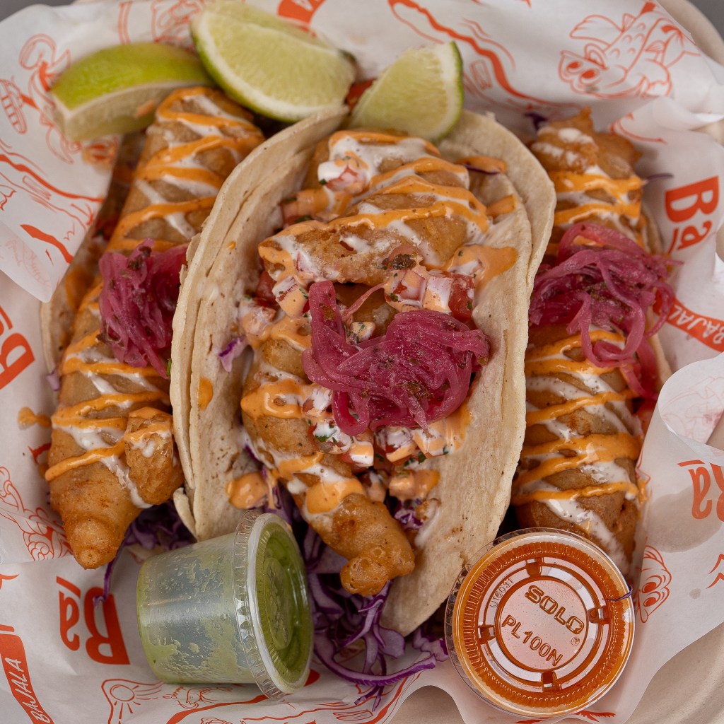 Bajala Fish and Shrimp Tacos. This was from when they operated a cart at Nob Hill in NW. They have since closed the cart but they continue to do pop ups around town and I know that we have not seen the last of them! They have two pop ups this month. Incredible baja style fish and shrimp tacos. The real deal. These are some of the best baja style Mexican tacos I have had outside of Mexico. Batter is cripsy and perfect.