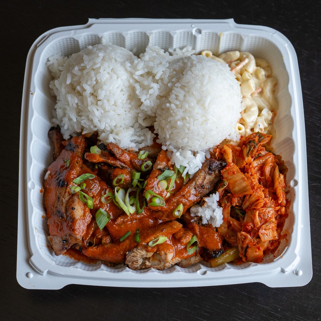Grilled Korean Chicken Plate: Grilled Boneless Thighs with Spicy Sweet Korean Sauce and Won Bok Kimchi. With rice and mac salad of course (you can also get green salad, but I recommend the mac salad for authenticity sake and because it’s better). They added kimchi a few years ago, it didn’t used to come with it. But it is a revelation because it pairs so well with the chicken and flavors, offering a nice counterpoint, and also because it is the best kimchi I’ve ever had. Perfect blend of flavors, tangy and funky in just the right amount. This is my go-to dish and I have been eating it for 15 years. Chicken is perfect, sauce is perfect, kimchi is perfect. It is a large plate of food and a great deal at $18. They know me when I call in this order, that’s how many times I’ve ordered it. In fact, I can say with reasonable certainty that I have ordered this one dish more than any other in my life. For good reason. If somehow you’ve never ordered this from them, please fix that.