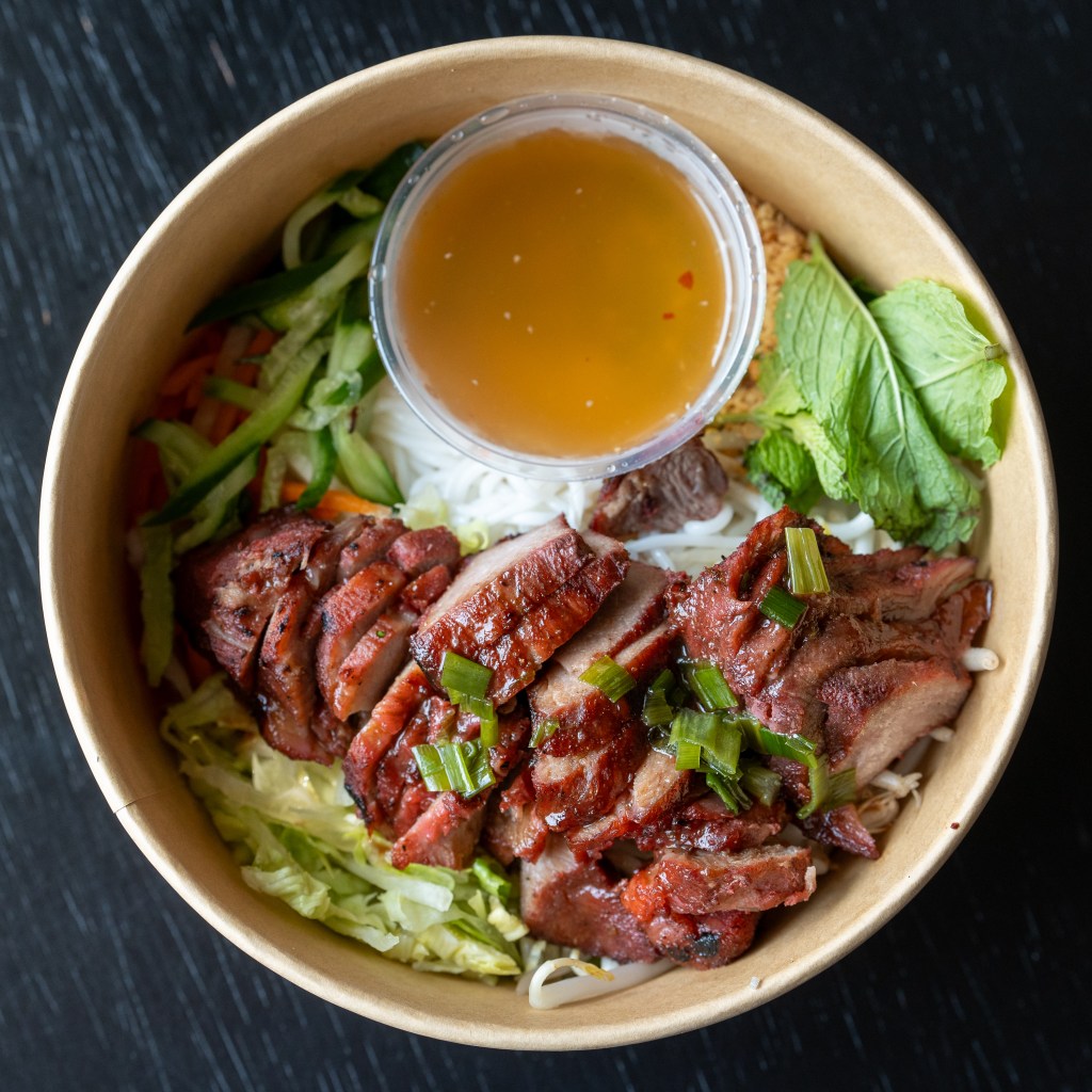 From an earlier visit in 2024, this is the Bún Xá Xíu, a Char Siu Noodle Bowl. Served with their thin rice noodles, herbs, salad and the fish sauce vinaigrette which they serve with all the rice and noodle bowls. This was so good. Really the perfect lunch in bowl form. They change up their menu fairly often, and I’m not sure if it’s seasonal or follows some other whim, but this item is no longer on the menu. In fact right now their menu seems to be all about soups and I don’t see the standard rice or noodle bowl option.