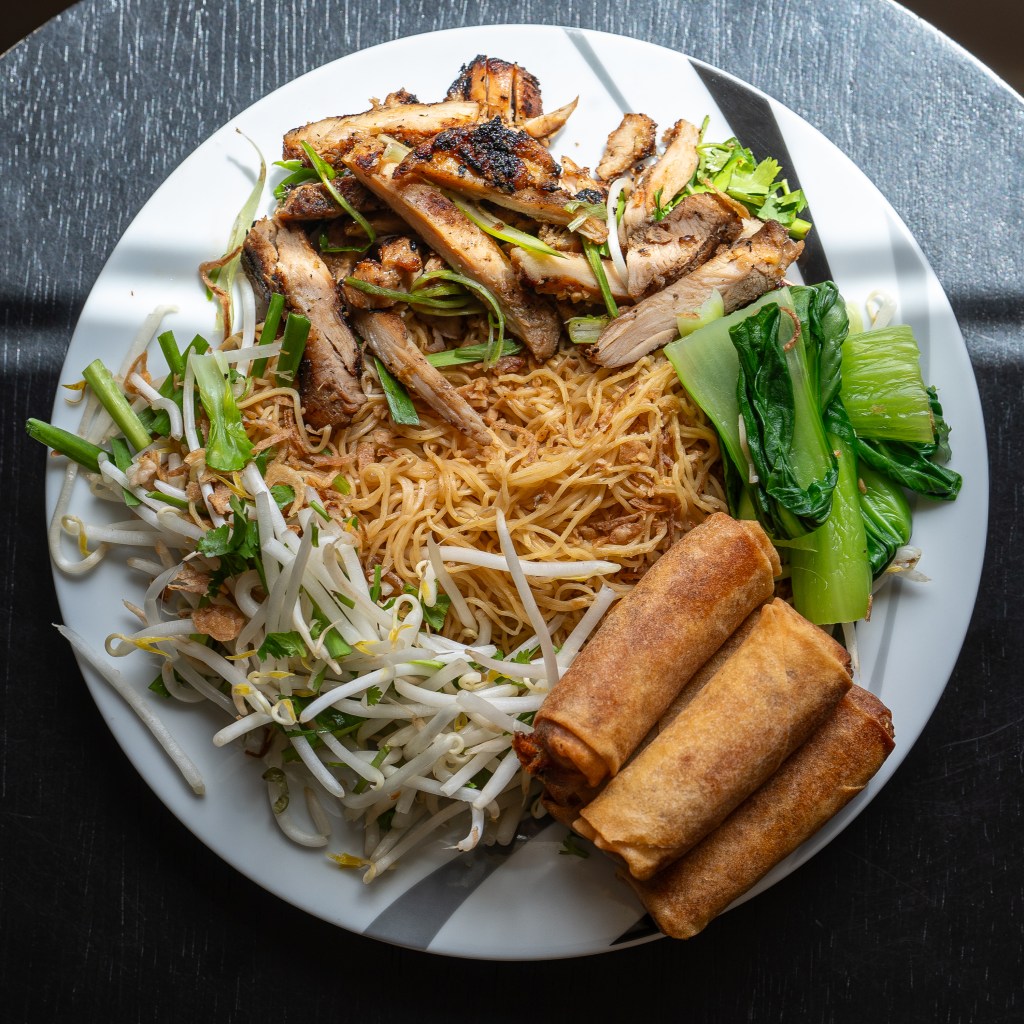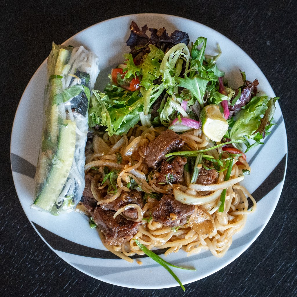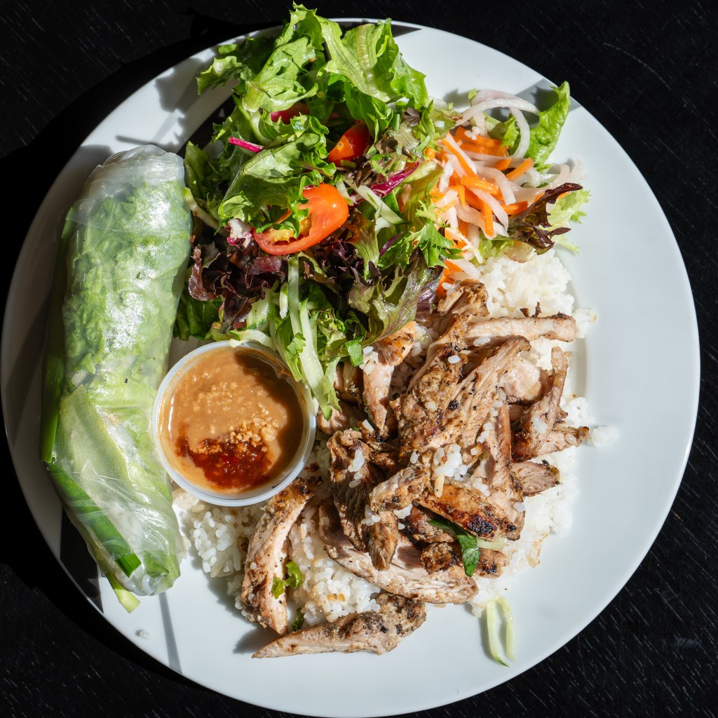 Here is a similar lunch but with egg noodles instead of the standard rice noodles or rice. This is on the menu sometimes and sometimes not. Currently not. The egg noodles were good, more substantial, chewy and flavorful than the rice noodles. This one came with Bok Choy which I love, can never get enough of that vegetable. The one (and only) thing I don’t like on their menu are the egg rolls (pictured here). I kept forgetting that I didn’t like them and ordering them. The flavor is bland, which is such a stark contrast to all their other dishes and appetizers that have such bold flavors. Go for the salad rolls not the egg rolls. I highly recommend Lua if you like Vietnamese food, fresh ingredients, delicious bold flavors, and healthy meals. Happy Eating!