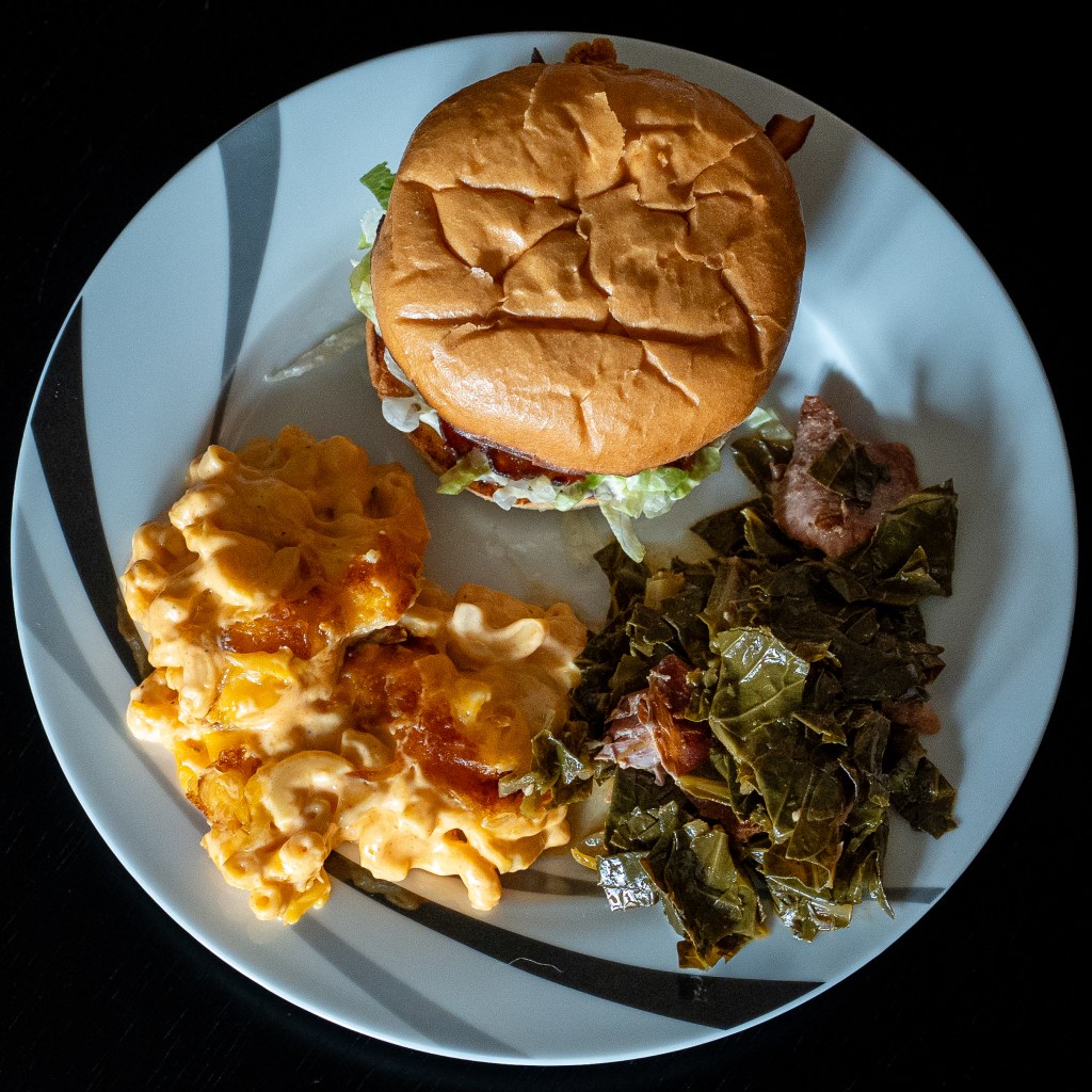 From my visit last Sunday I wanted to try their sides. They make a shrimp BLT that sounded interesting. So I ordered the Shrimp BLT, Mac & Cheese and Collard Greens. First of all, you can tell just by the photo how delicious the Mac & Cheese is. Gooey, delicious, coat-your-stomach type mac here. Legit some of the best I’ve had. It’s a simple dish, and I always judge a restaurant/BBQ joint/food cart on the quality of their Mac. The Collard greens were incredible too! Collards are one of my favorite side dishes. They used smoked turkey in theirs instead of the more traditional pork. The turkey was super smokey and delicious, they had nice big chunks of it in there. There was a nice vinegary tang to the broth. I always drink the broth out of the cup! Will definitely be going back for these dishes more. The shrimp BLT was super yummy. Nice big shrimp patty. Weirdly the flavor of the bacon wasn’t very prominent, maybe uncured bacon would stand up better flavor wise. Still a really great sandwich though. Here’s another photo so you can see the sandwich better
