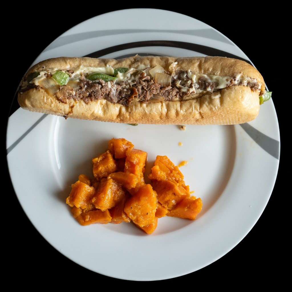 From yesterday. I wanted to try the other side they offer, candied yams. Also I wanted to try their Philly Cheesesteak (Uncle Phil). They give names to all their dishes (Uncle Phil, Big Pun, etc.). Their menu is split into A side and B side so as a musician and vinyl collector I appreciate it. This was kind of a random combo of food, but like I said I wanted to try these two things. The candied yams were good, some of the best I’ve had. Sweet but not cloying like some can be. In general I favor savory over sweet, so I will generally choose collards and mac over candied yams but I’m glad I tried them. The Philly cheesesteak was on point. Real classic, nicely executed. Thinly sliced steak, onions, mushrooms, bell peppers & provolone cheese. Not trying to reinvent the wheel here, just serving up the classic Philly that you want. Highly recommend J’s Cut & Wraps, especially on a Sunday! Open from Wednesday-Sunday 12-6. Happy eating!