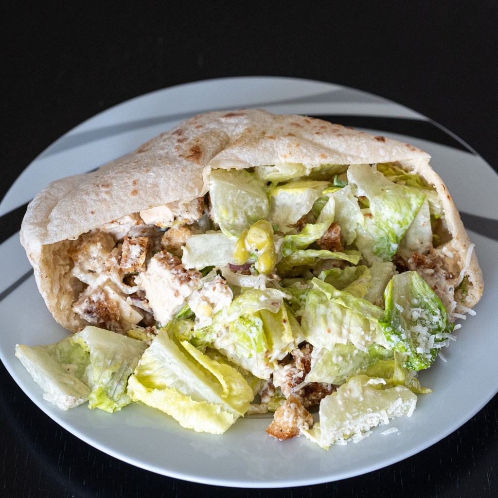 Fried Chicken Caesar Pita Wrap from Red Sauce Pizza. Red Sauce is a favorite, especially on the weekends when they run deals on 1-topping pizzas as well as serve hoagies. Their hoagie is easily one of the best in town and a favorite of mine. You can only get them for lunch on Saturday and Sunday. They often run hoagie specials, or in this case, a pita wrap special. This was super yummy. And huge! Hard to get the scale from the photo but this was massive. Somehow the pita did hold up during eating, though I’m glad I got it to go so I could eat it in the privacy of my home and not in public. Chicken was on point, as was the Caesar salad and dressing.