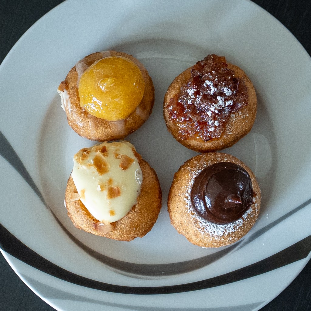 Doughnuts from Pip’s Original. Pip’s is a Portland favorite that has been around forever and is a place that I always mean to stop by more often. They make fresh Belgian waffle-inspired doughnuts with a rotating menu of toppings. They are also known for their Chai teas. Very delicious doughnuts and a perfect treat. I got 4 to go while waiting on my pita wrap down the street. This is the year I’m going to remember to get free birthday doughnuts! Happy eating.